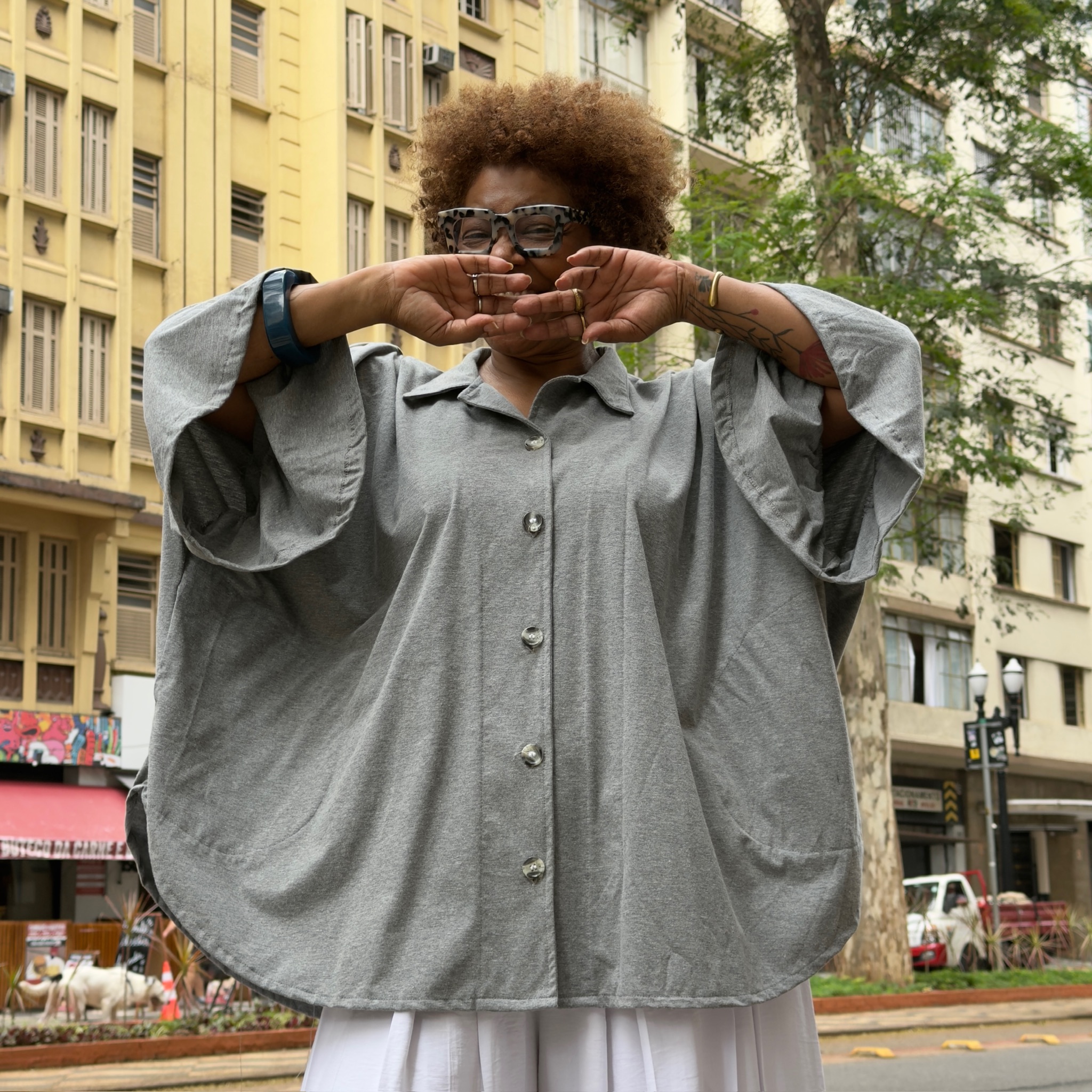 Kimono em tamanho único, com botões frontais, confeccionado em malha.
