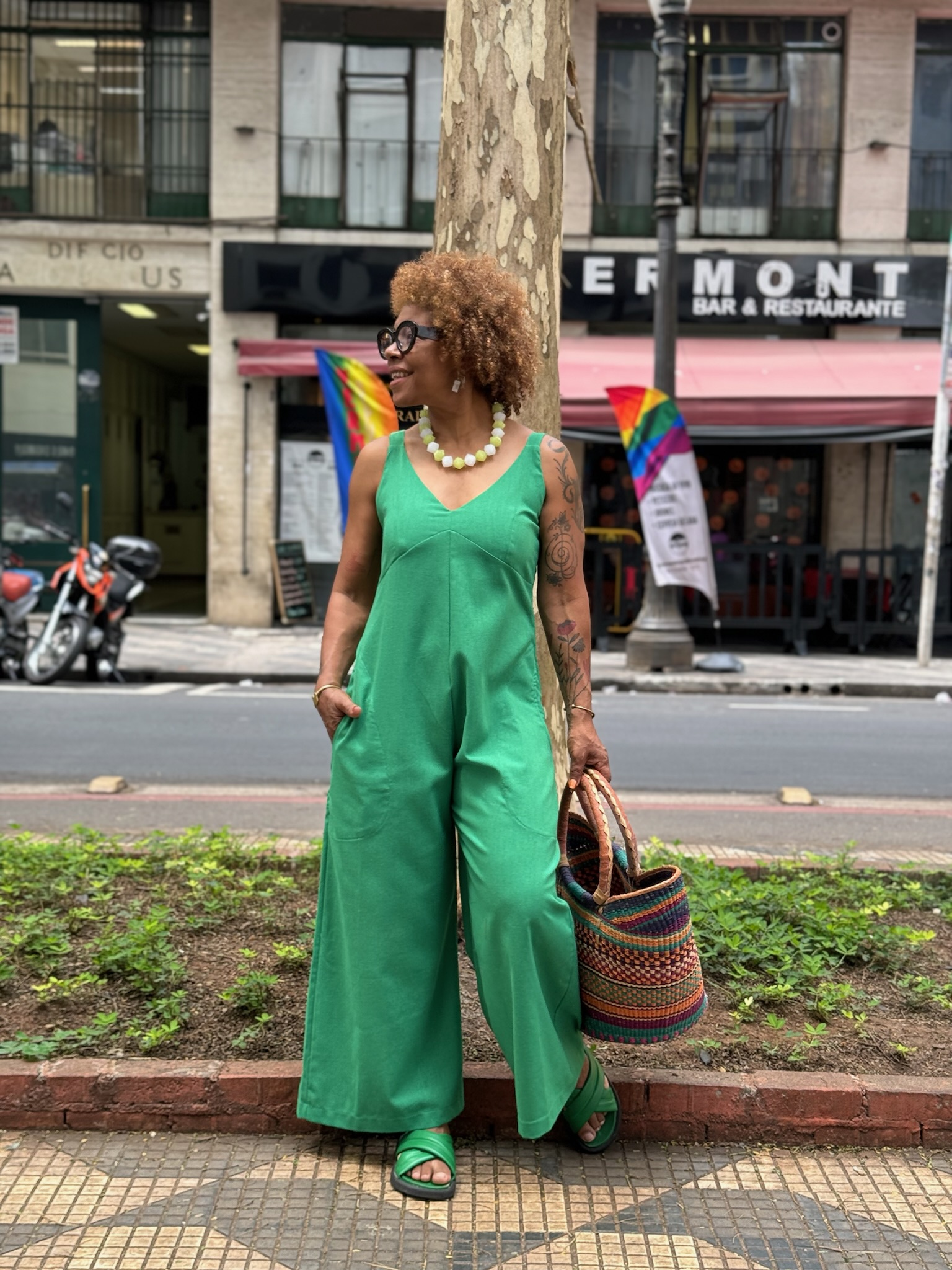 Macacão Afrodite confeccionado em linho misto, bolsos laterais, recorte no busto duplo não sendo transparente alças com regulador e comprimento longuete.