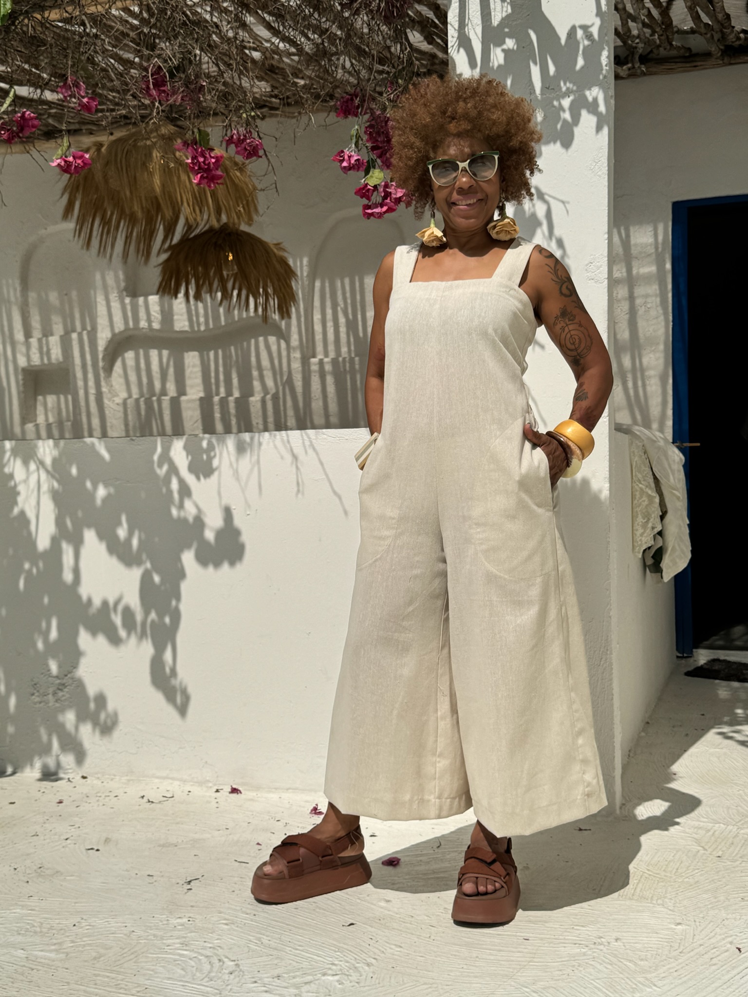Mais uma criação confortável, prática e atemporal, nosso macacão tem bolsos laterais profundos, alças largas que lhe dará um conforto extra, comprimento longuete e zíper lateral para que vc possa fechar sozinha.