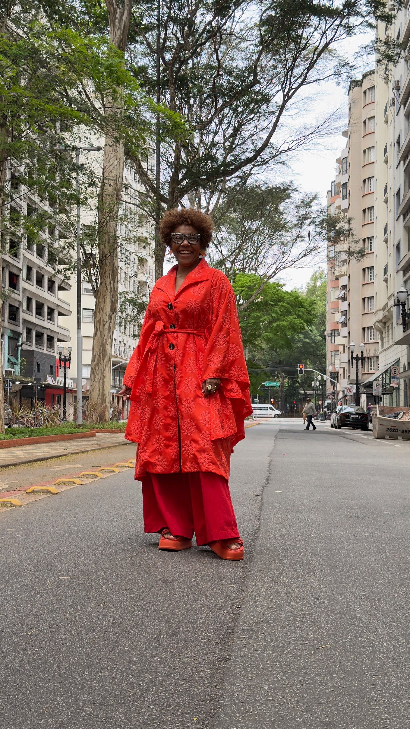 Túnica estampada com modelagem ampla, confeccionada em tecido leve e fluido que traz movimento ao look. A túnica conta com gola tradicional, abotoamento frontal, e mangas longas com caimento solto, que criam um visual moderno e elegante. A cintura é marcada por faixa ajustável, permitindo adaptar o shape ao corpo. O comprimento é midi curto, com leve assimetria na barra. Um modelo versátil e estiloso, ideal para quem busca conforto aliado a personalidade.